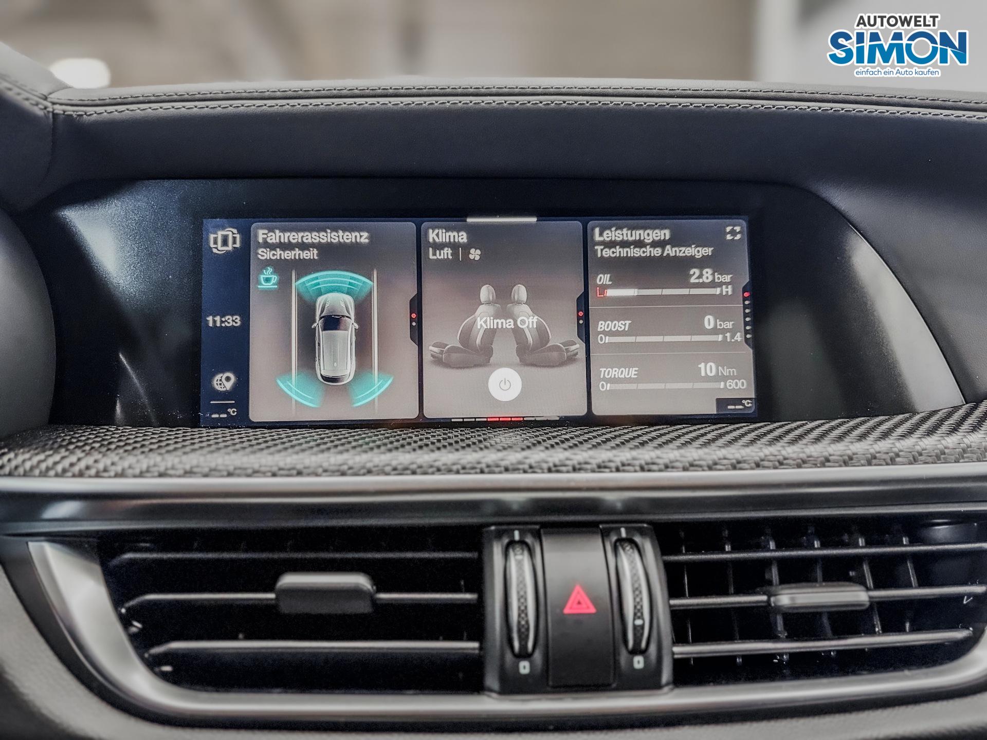 91.000,– € 19% MwSt. Angebot anfragen Angebot anfragen (84130) Alfa Romeo Stelvio QUADRIFOGLIO VERDE AKRAPOVIC Technologie-Paket Neuwagen mit Tageszulassung 30.06.2025 auf Lager Automatik 382 kW (519 PS) 2.891 ccm Benzin | Euro 6 10 km Außenfarbe: Etna Rot Innennfarbe: Schwarz QV 778 Verbrauch kombiniert: 11,80 l/100km Verbrauch Innenstadt: 17,50 l/100km Verbrauch Stadtrand: 11,90 l/100km Verbrauch Landstraße: 10,10 l/100km Verbrauch Autobahn: 11,20 l/100km CO2-Emissionen: 267,00 g/km CO2-Klasse: G Download Energiekosten bei 15.000 km pro Jahr: 3.078,03 € CO2 Kosten (niedrig) (Kosten Durchschnitt 10 Jahre): 2.403,- € CO2 Kosten (mittel) (Kosten Durchschnitt 10 Jahre): 5.086,35 € CO2 Kosten (hoch) (Kosten Durchschnitt 10 Jahre): 8.010,- € Jahressteuer: 606,- € Serienausstattungen Innen 12V Steckdose Kosmetikspiegel beleuchtet Rücbanklehne geteilt klappbar Infotainment & Kommunikation USB Anschluss Sicherheit & Assistenz ABS Airbag und Beifahrerairbag ASR ESP ISOFIX Kopfairbags Seitenairbags vorne Zentralverriegelung mit Funkbedienung Räder & Technik Berganfahrhilfe Reifendruckkontrolle Servolenkung Start Stop Sonstiges Batteriezustand (State of Health, SoH) % Erstzulassung 30.06.2025 Garantiebeginn 30.06.2025 Kilometerstand 10 Eingebaute Extras Pakete NEC AKRAPOVIČ Abgasanlage aus Titan mit Dekor aus Kohlefaser 4TA Bremssättel rot lackiert, mit Alfa Romeo Schriftzug B24 Technologie-Paket: Active Driving Assist (ADA): Stau-Assistent (TJA) und Autobahn-Assistent (HWA), Diebstahlwarnanlage mit Innenraumüberwachung und Neigungssensor, Intelligente Geschwindigkeitskontrolle (ISC) Innen 4 Auspuffrohre und Heckstoßstange mit Diffusor Ambientebeleuchtung Beheizbares Lenkrad Dachhimmel in Schwarz Karbon Elemente Klimaautomatik Leder Sitzpolsterung Schaltwippen Sitzheizung vorne Sportlenkrad Sportlenkrad Q in Leder und Alcantara mit Carbon Elementen Sportpedale Sportsitze vorne Steckdose im Gepäckraum 230V/50Hz Türverkleidungen oben, Armaturenbrettoberteil und Armlehne in Leder Vordersitze el. verstellbar Vordersitze höhenverstellbar Vordersitze mit Elektrisch verstellbareren Seitenhalt Vordersitze mit Lordosenstüte Infotainment & Kommunikation Android Auto und Apple CarPlay Bluetooth Bordcomputer DAB Harman/Kardon Sound Theatre Induktionsladen für Smartphones Multifunktionslenkrad Radio Navigationssystem Connect NAV Volldigitales Kombiinstrument Sicherheit & Assistenz ACC Tempomat Einparkhilfe hinten Einparkhilfe vorne Fernlichtassistent Innenspiegel Abblendend Keyless Lichtsensor Notbermsfunktion Regensensor Rückfahrkamera Spurhalteassistent Totwinkelassistent Voll LED Matrix Scheinwerfer Außen Anklappbare Aussenspiegel Aussenspiegel abblendend El. Heckklappe El. Heckklappe mit Komortzugang Elektr. Seitenspiegel beheizbar Fensterleisten in Schwarz Heizbare Waschdusen Privacy Glass Räder & Technik 20 Zoll Leichtmetallfelgen Alfa DNA (Fahrprofilauswahl) Mechanisches Sperrdifferential (MLSD) Monster Bremsanlage Quadrifoglio-Bremssättel in Schwarz mit rotem Logo SCD-Federung (Synaptic Dynamic Control) Aktives Fahrwerk Gesamtpreis 91.000,– € inkl. 19% MwSt., Kosten für Überführung & Zulassungsunterlagen Drucken Verfügbarkeitsanfrage stellenWir rufen Sie an Drucken, parken